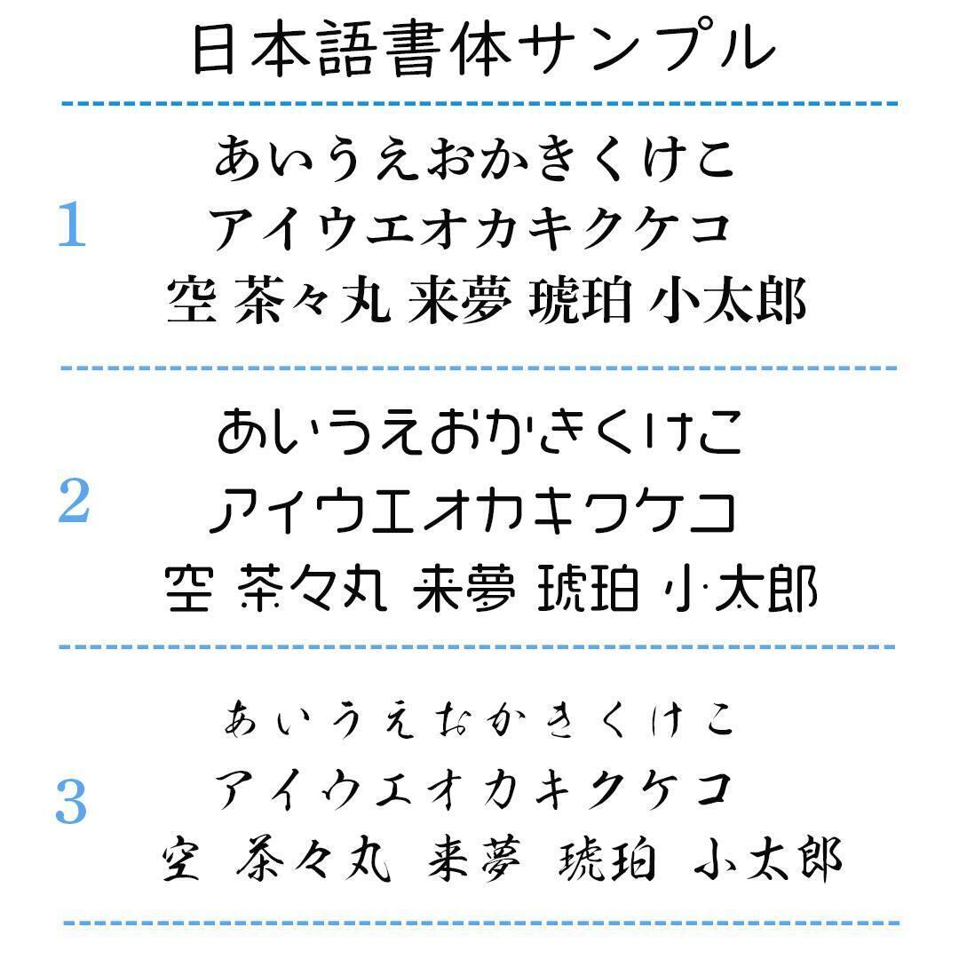 文字入れをご希望の場合は、実際に文字入れをする文字(英文字の場合は英文字、平仮名の場合は平仮名)でご連絡をお願いします。
